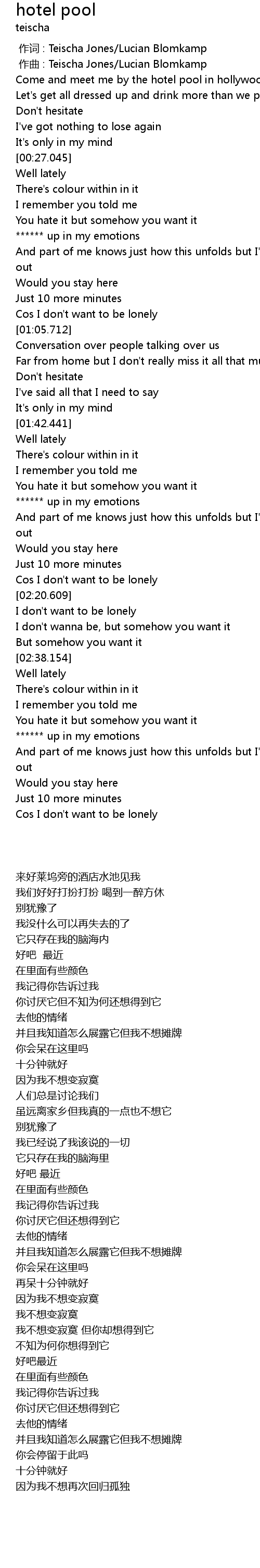 | [00:00.000] | 作词 : Teischa Jones/Lucian Blomkamp |