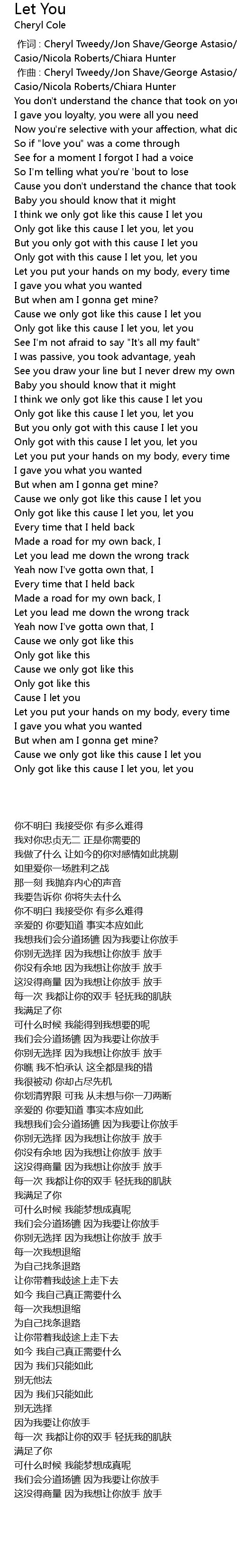 | [00:45.53] | Only got with this cause I let you, let you |