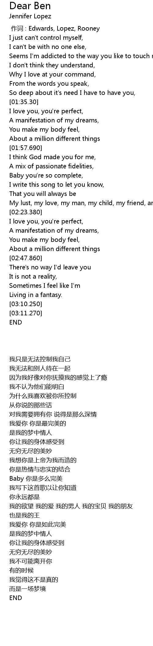 | [01:36.670] | I love you, you' re perfect, |