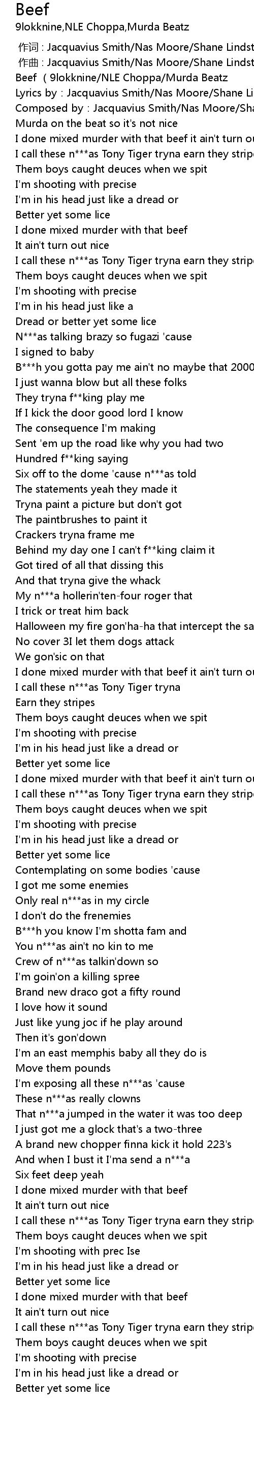 | [00:00.157] | Beef 9lokknine NLE Choppa Murda Beatz |