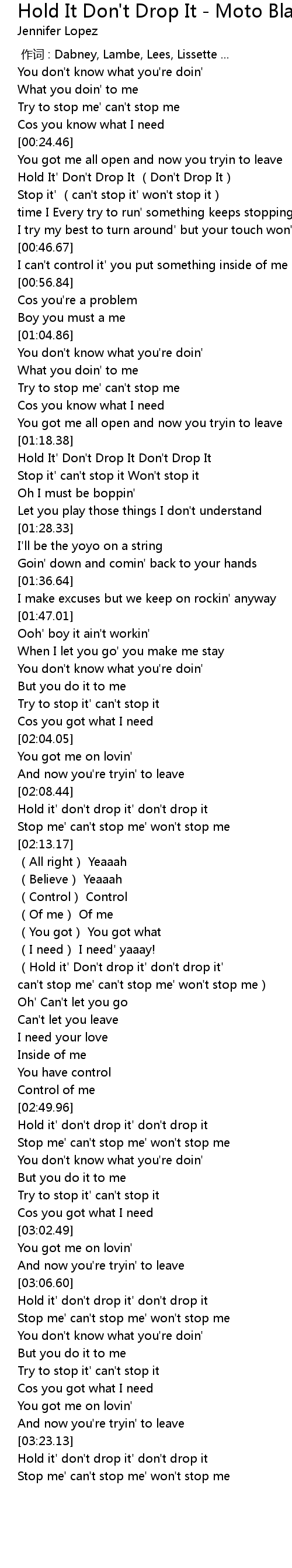 | [01:19.07] | Hold It' Don't Drop It Don't Drop It |