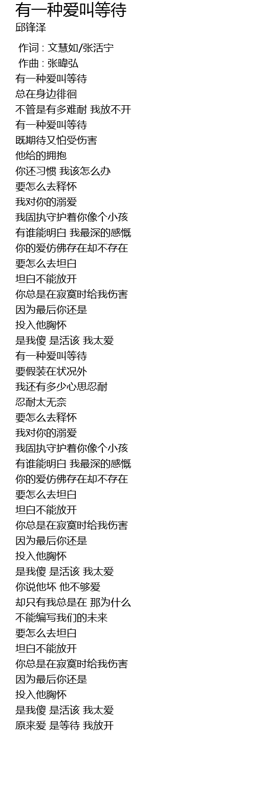| [00:00.000] | 作词 : 文慧如/张活宁 |