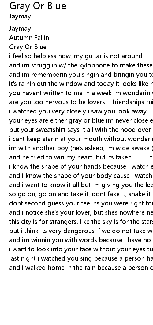 your eyes are either gray or blue im never close enough to say |