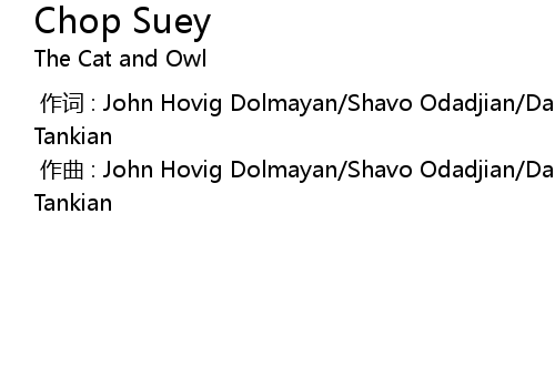 | [00:00.000] | 作曲 : John Hovig Dolmayan/Shavo Odadjian/Daron V Malakian/Serj Tankian |