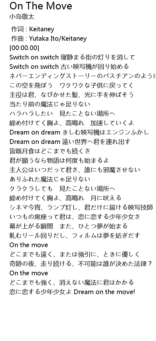 | [03:43.99] | 恋に恋する少年少女よ Dream on the move! |