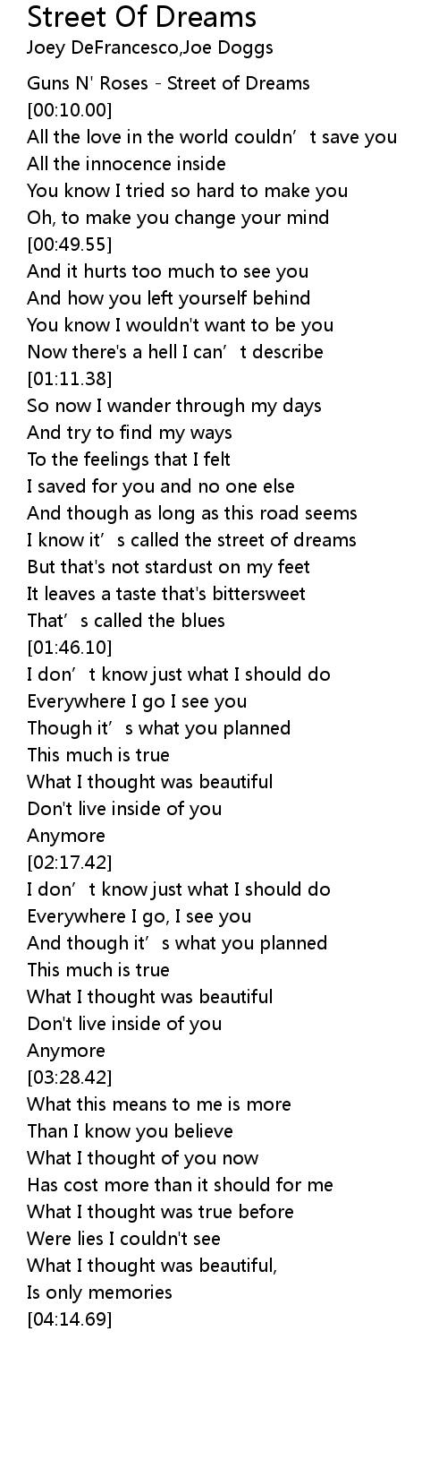 | [00:02.00] | Guns N' Roses - Street of Dreams |