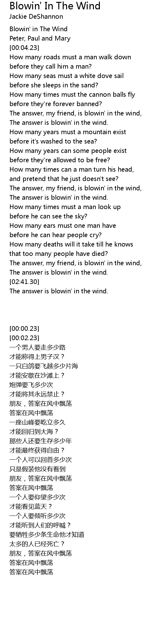 The answer, my friend, is blowin' in the wind, |