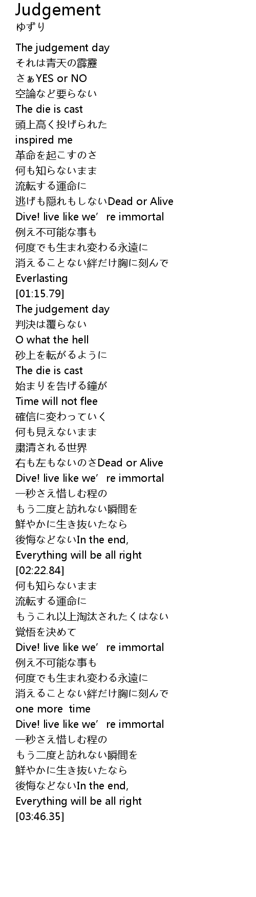 | [00:49.30] | 逃げも隠れもしないDead or Alive |