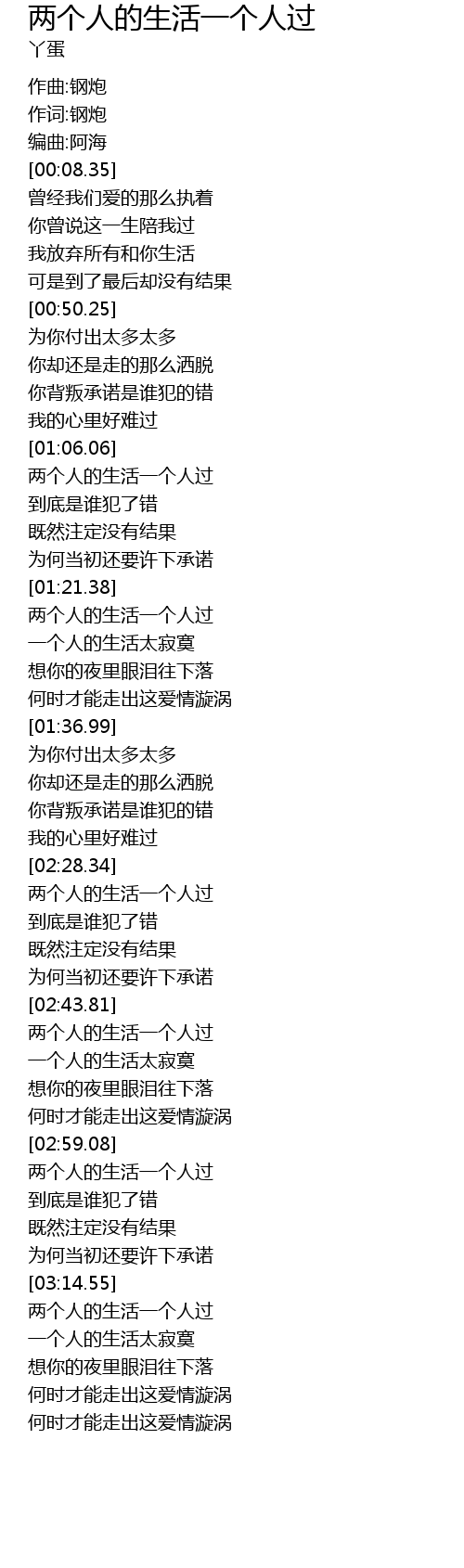 | [00:58.12] | 你背叛承诺是谁犯的错 |