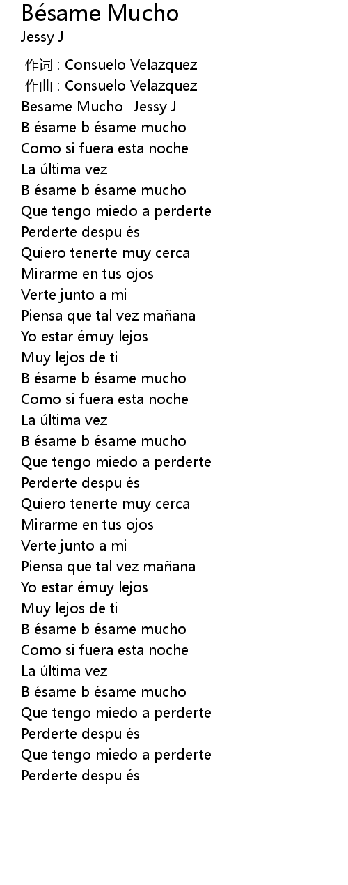 | [00:00.000] | 作词 : Consuelo Velazquez |