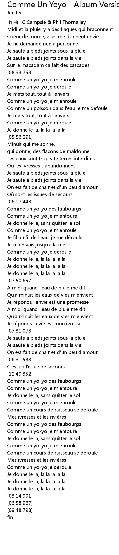 | [00:48.572] | Comme un yo-yo je m'enroule |