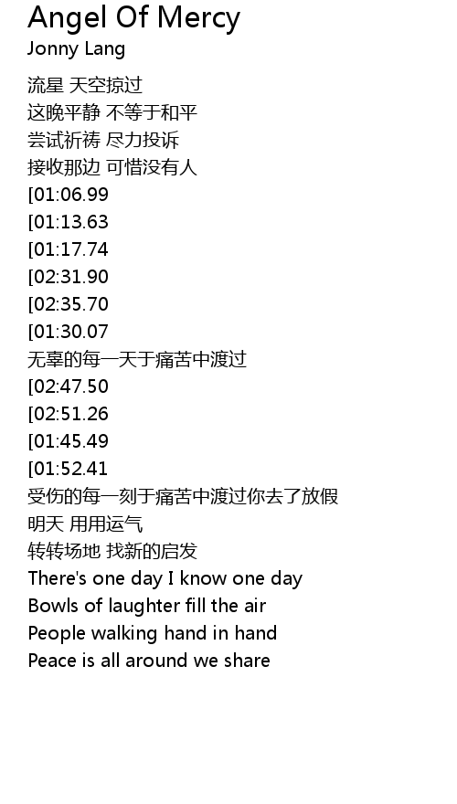 | [03:39.38][02:47.50][01:37.95] | Angel of Mercy |