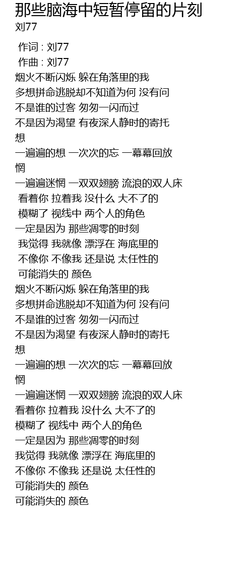 | [01:13.858] | 一遍遍的想 一次次的忘 一幕幕回放 |