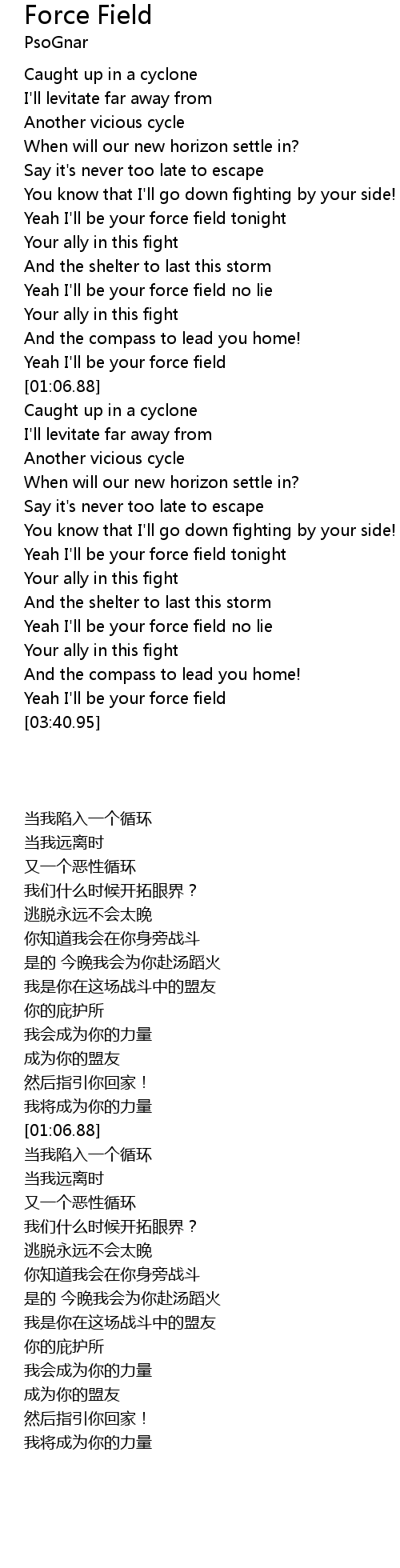 Yeah I'll be your force field no lie |