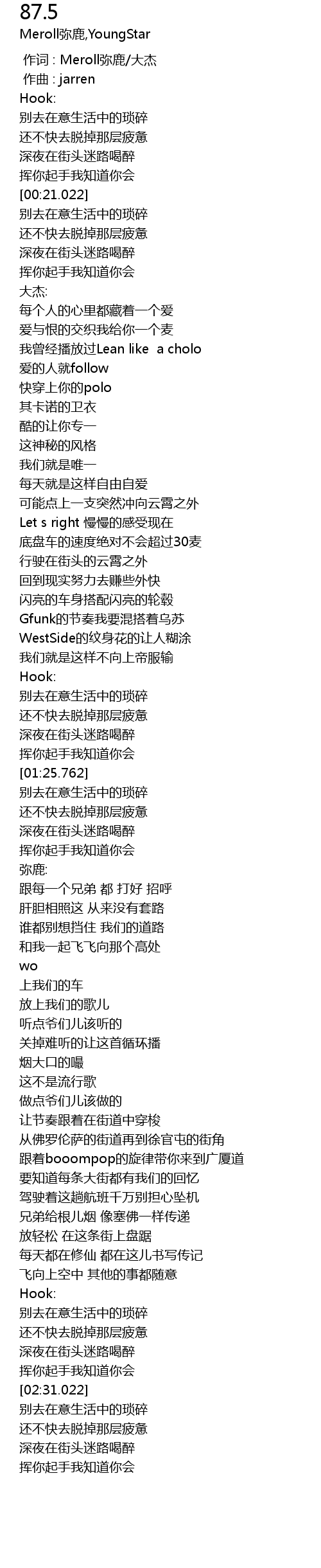 | [01:58.762] | 让节奏跟着在街道中穿梭 |