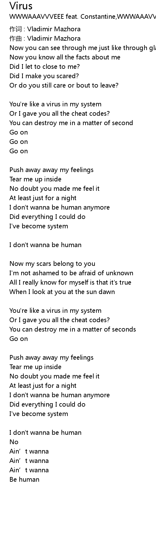 | You're like a virus in my system | |