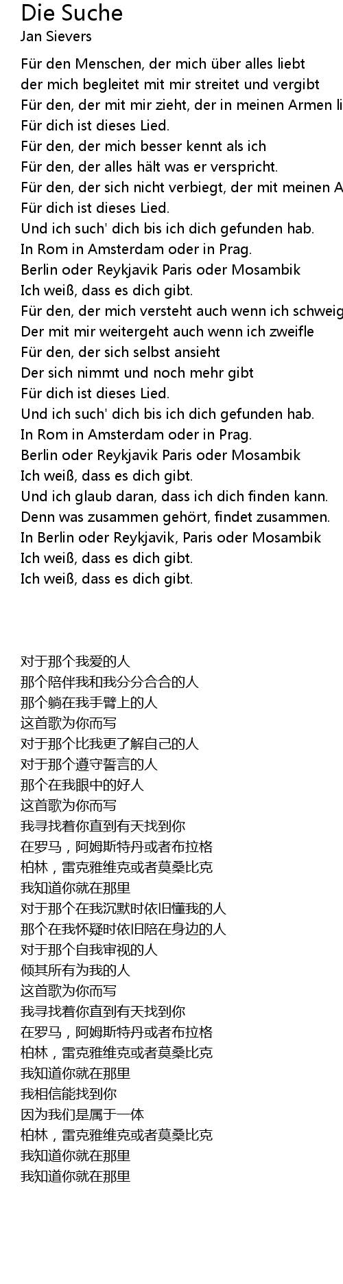 | [01:05.370] | Und ich such' dich bis ich dich gefunden hab. |