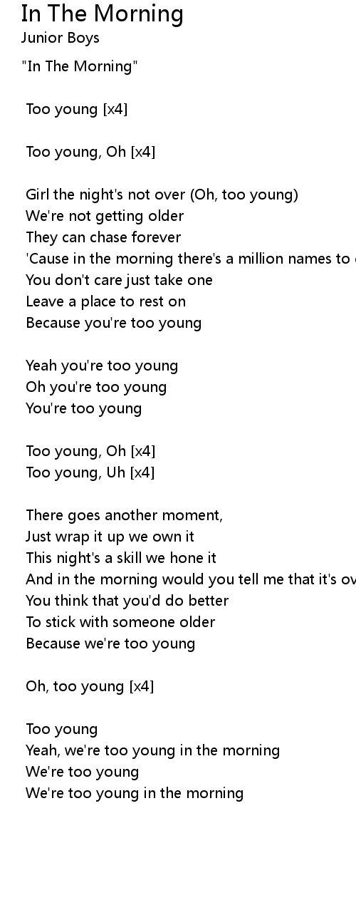 We're too young in the morning |