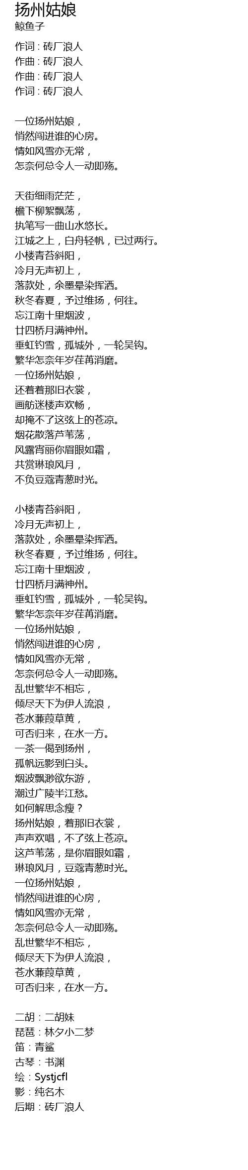 | yang zhou gu niang, zhe na jiu yi shang, | |