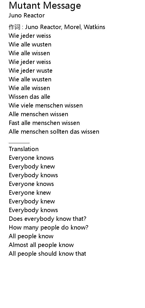 | Song | Mutant Message |