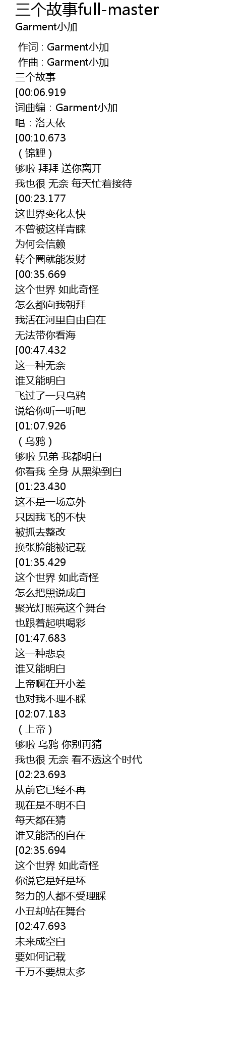 | [02:16.822] | 够啦 乌鸦 你别再猜 |