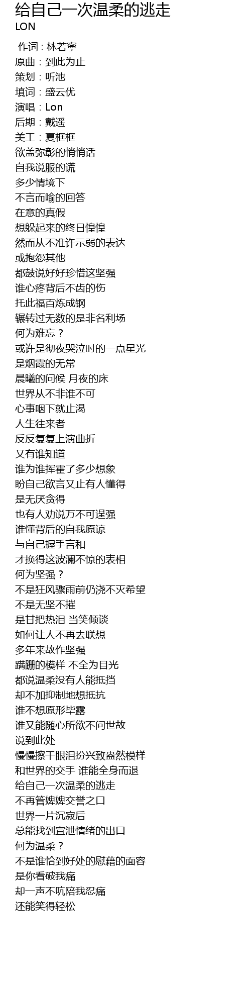 | [03:22.234] | 给自己一次温柔的逃走 |