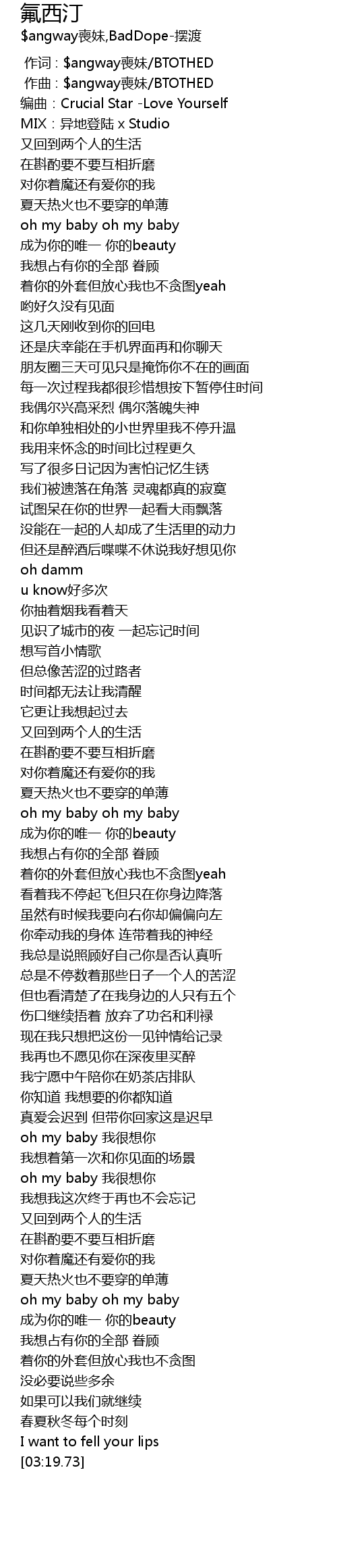 | [00:00.000] | 作词 : $angway喪妹/BTOTHED |