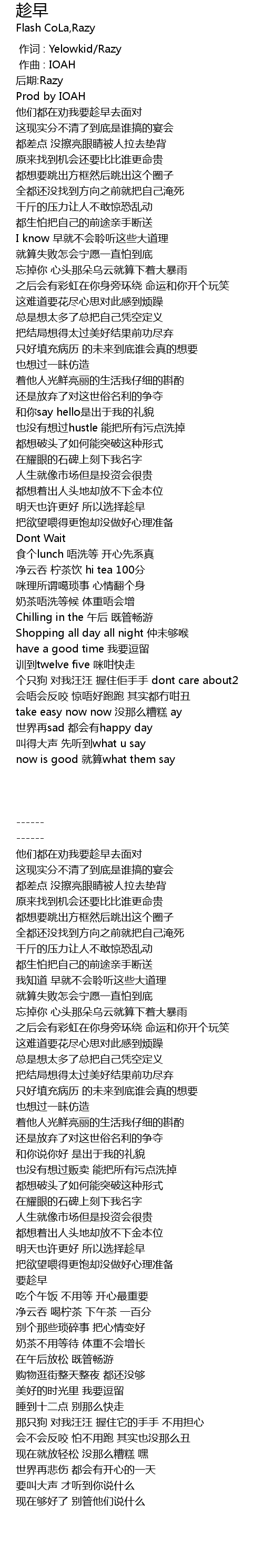 | [00:00.000] | 作词 : Yelowkid/Razy |