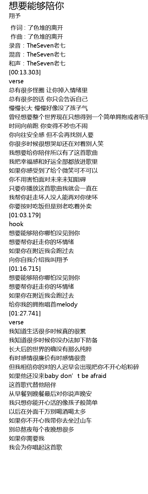 | [00:44.883] | 我想要给你陪伴所以有了这首歌曲 |