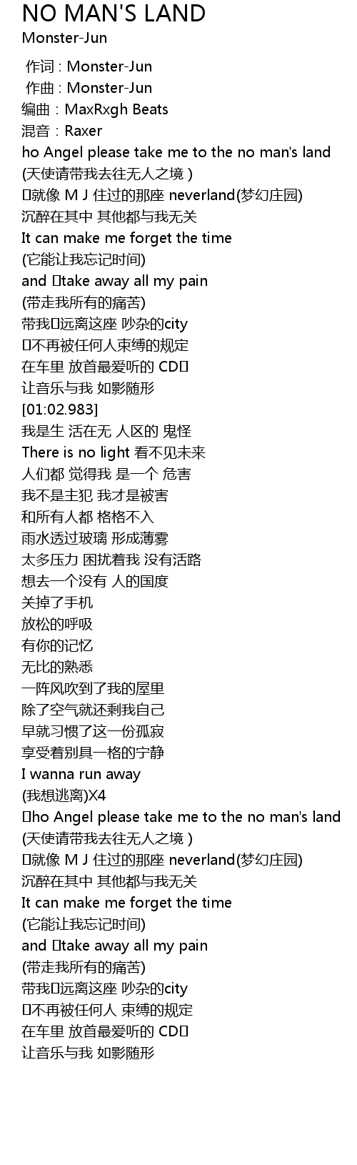 | [00:32.982] | (天使请带我去往无人之境 ) |