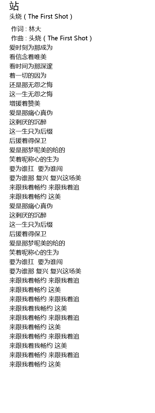 | [00:01.000] | 作曲 : 头烧(The First Shot) |