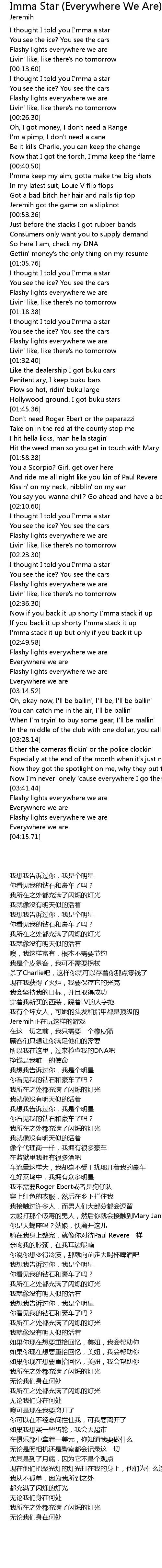 | [00:44.75] | In my latest suit, Louie V flip flops |