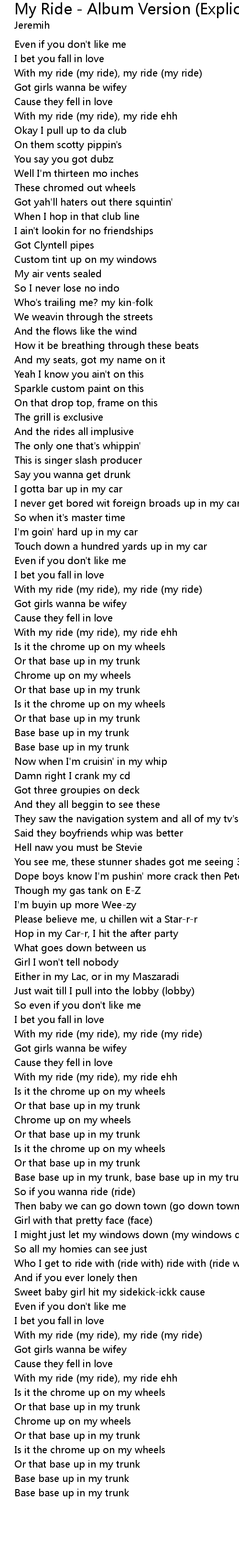 | [00:03.82] | With my ride (my ride), my ride (my ride) |
