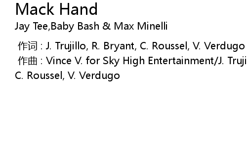 | [00:00.000] | zuo qu : Vince V. for Sky High Entertainment J. Trujillo, R. Bryant, C. Roussel, V. Verdugo |