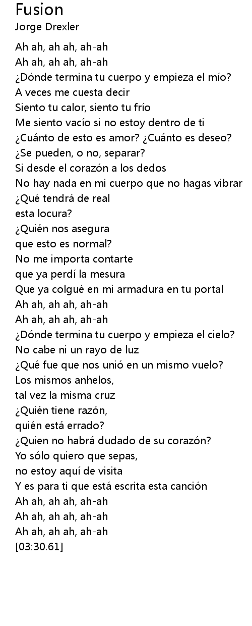 | [00:18.79] | Do nde termina tu cuerpo y empieza el mi o? |
