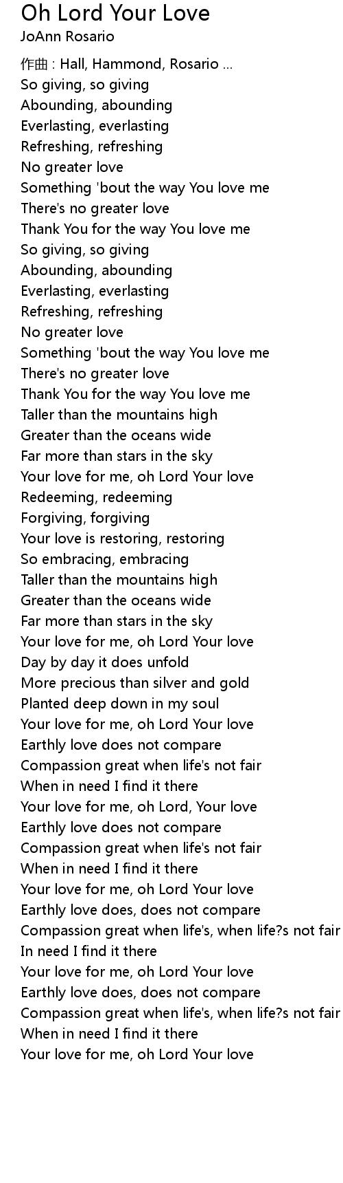 | Your love for me, oh Lord Your love | |