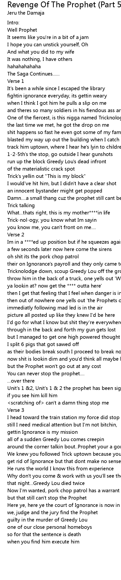 Damn....a small thang cuz the prophet still cant be stopped |
