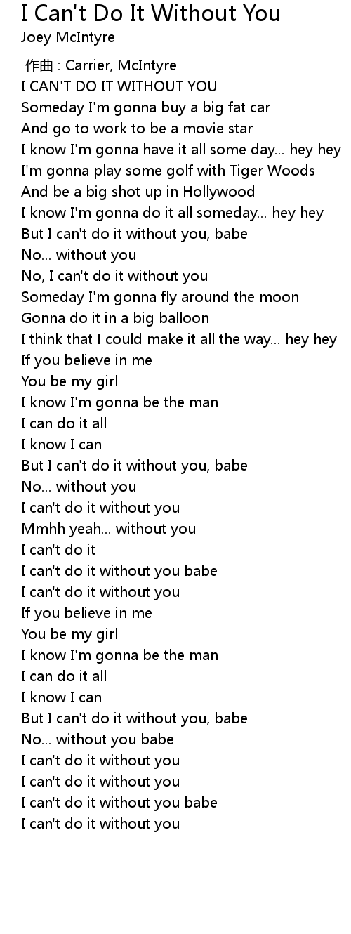 | [00:02.57] | I CAN'T DO IT WITHOUT YOU |