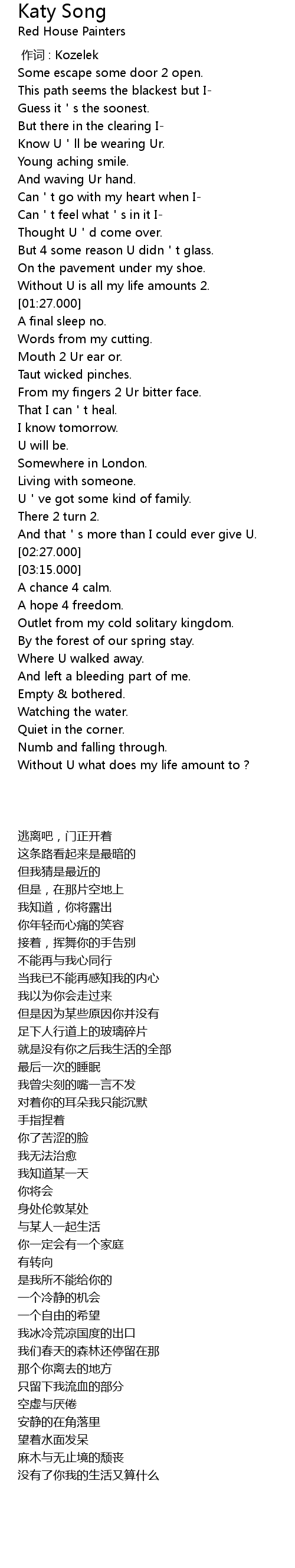 | [00:00.00] | 作词 : Kozelek |