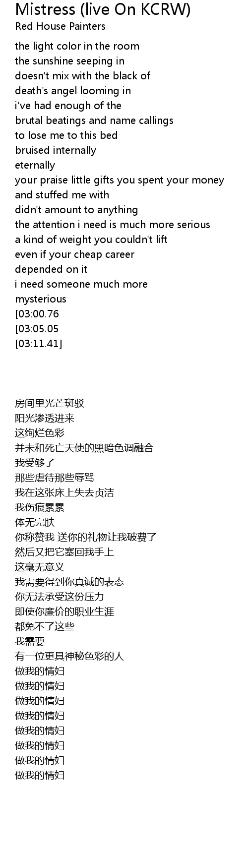 [03:17.24][03:05.05][02:48.75][02:40.51] to be my mistress
