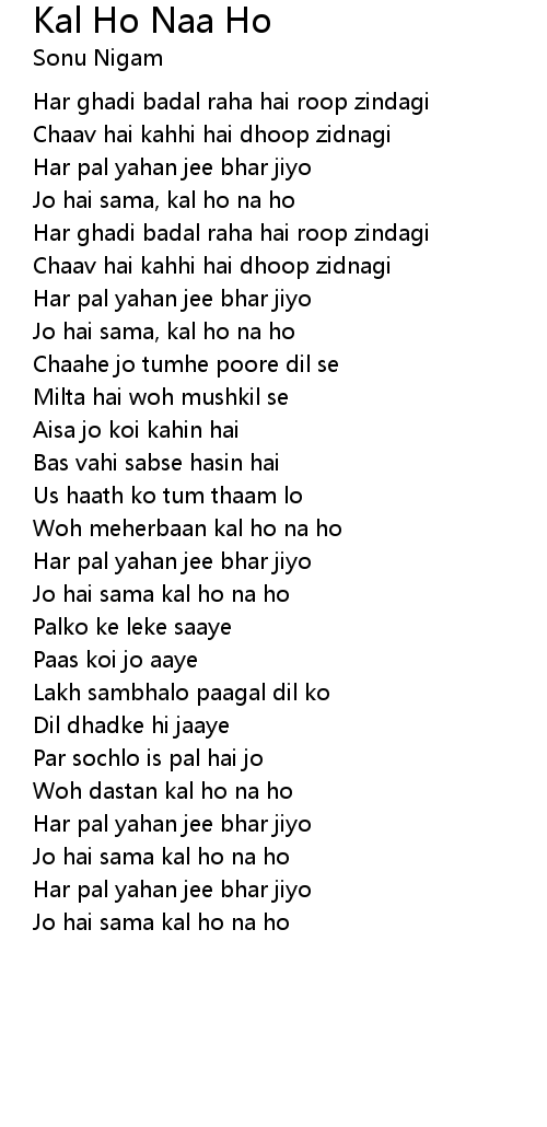 Kal Ho Naa Ho Lyrics