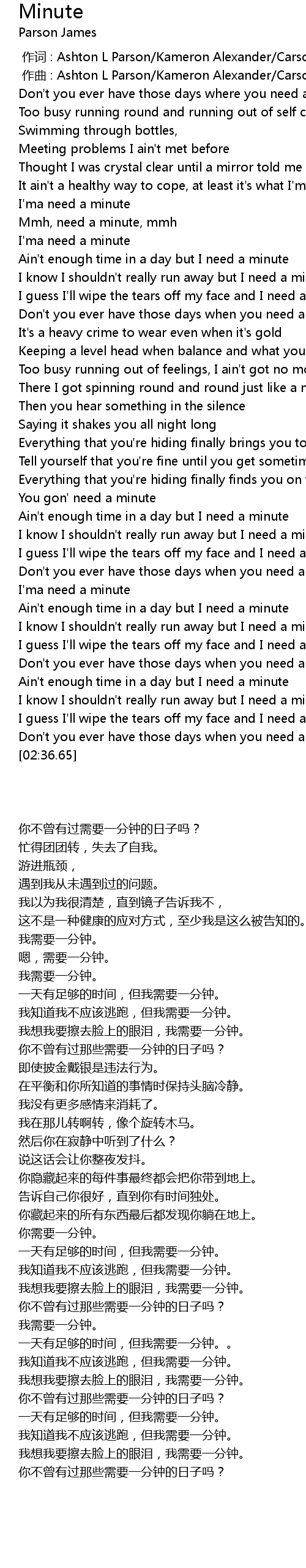 | [02:20.88] | Ain't enough time in a day but I need a minute |