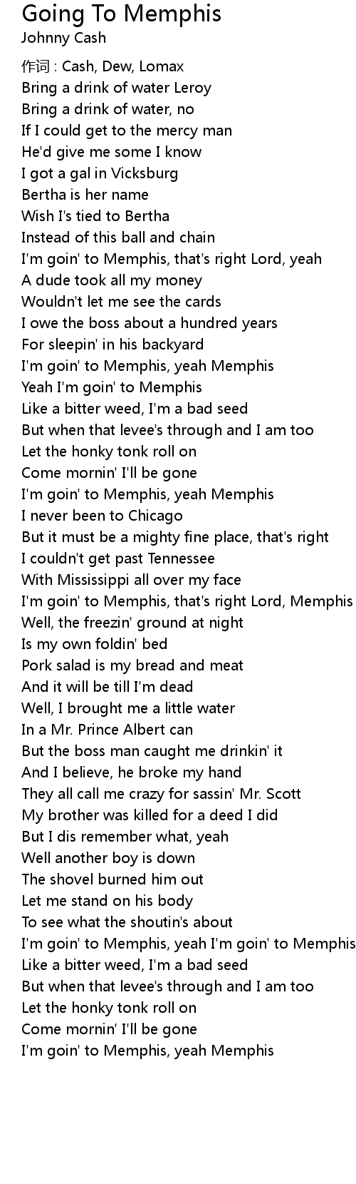 | I' m goin' to Memphis, that' s right Lord, Memphis | |