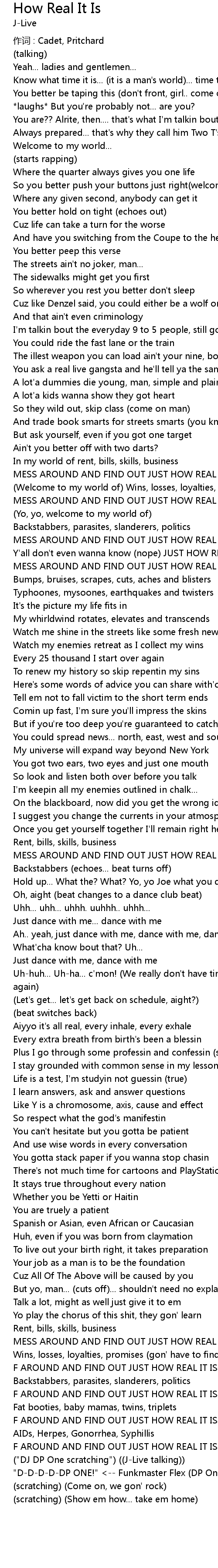 | Y' all don' t even wanna know nope JUST HOW REAL IT IS | |