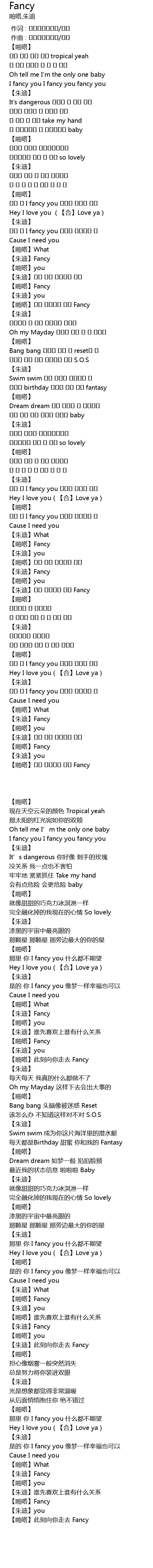 | [03:11.054] | 【朱迪】Fancy |