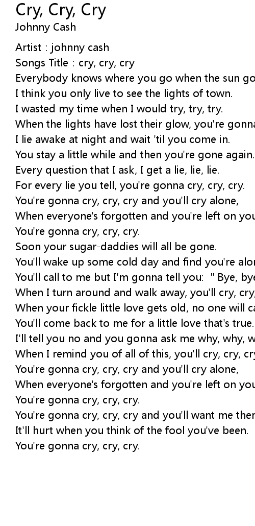 | [00:04.26] | Songs Title: cry, cry, cry |
