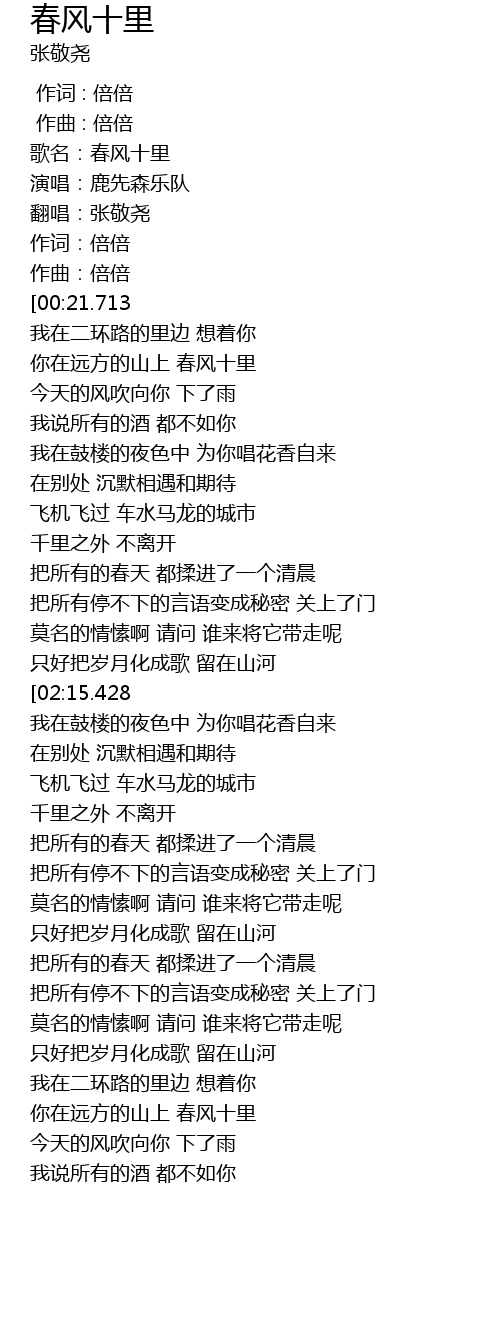 | [00:03.874] | gē míng: chūn fēng shí lǐ |