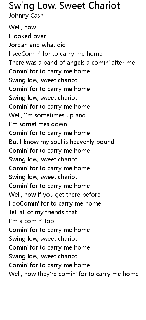 Swing low, sweet chariot |