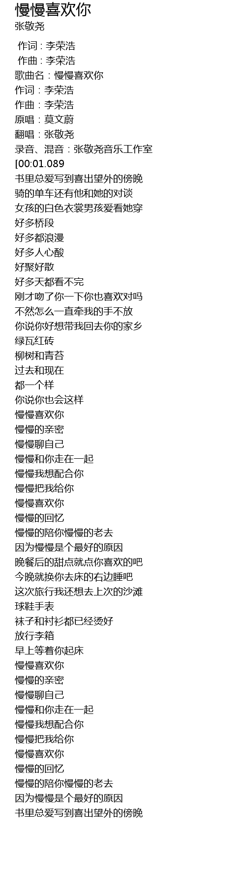 | [00:00.000] | 歌曲名:慢慢喜欢你 |