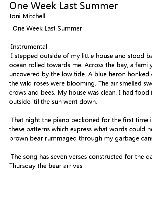 One Week Last Summer |